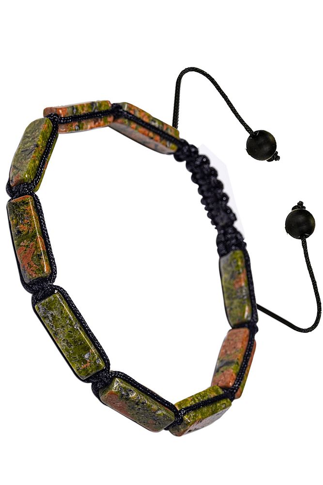 Unakit taşı kullanılarak tasarlanmış makrome örgülü doğal taş bileklik ortalama 18 CM uzunluğunda olup 20-22 CM\'ye kadar açılarak bileğe göre ayarlanabilir. Taşın yaklaşık ölçüsü 5X13.