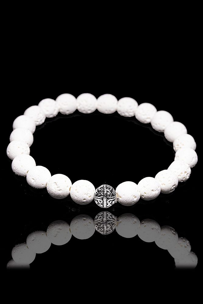 Sertifikalı Volkanik Beyaz Lav Taşı Bileklik - Gümüş Aparatlı
