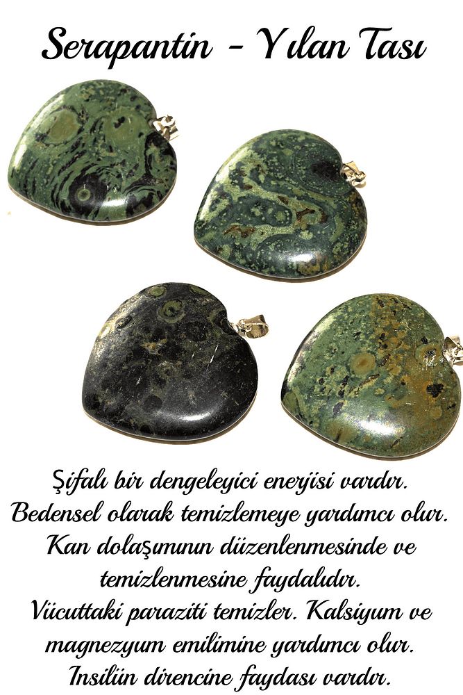 Sertifikalı XL Kalp Model Serpantin (Yılan Taşı) Kolye