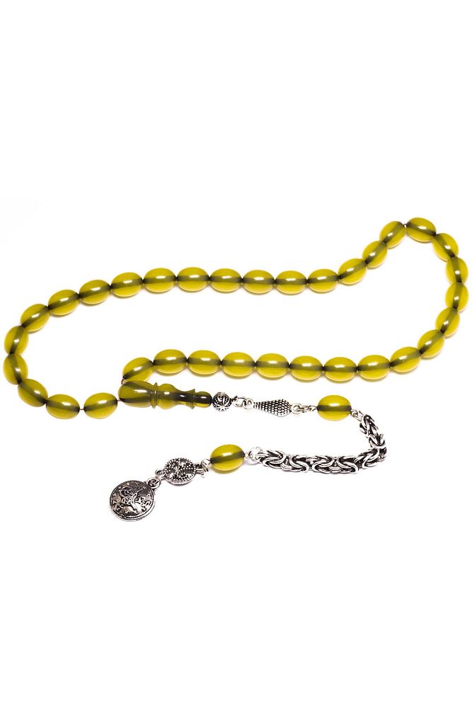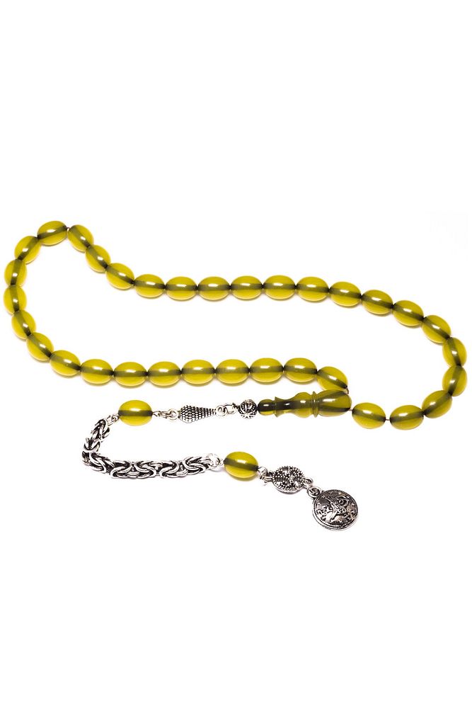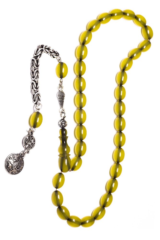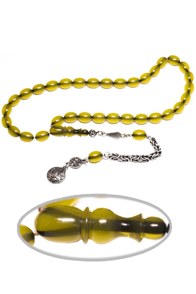 Sertifikalı Yeşil Renkli Osmanlı Benzetmesi Çubuk Sıkma Kehribar Tesbih
