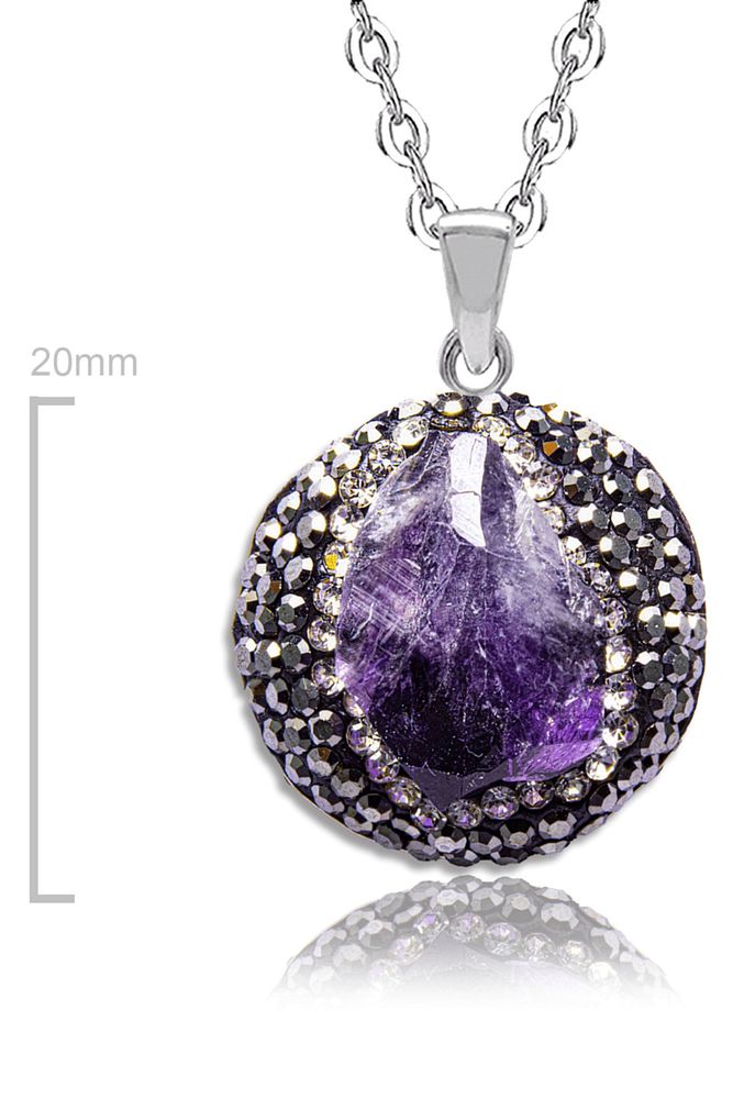 Sertifikalı Yüksek Kalite Zirkonlu Doğal Ametist Taşı Kolye