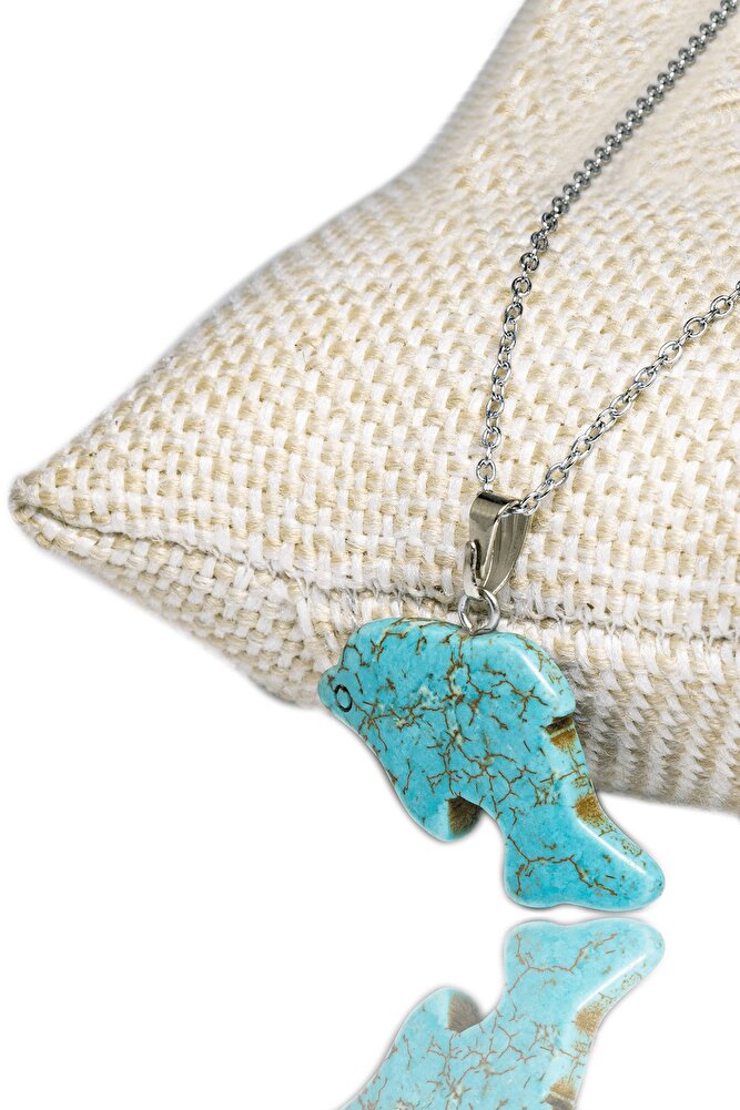 Sertifikalı Yunus Balığı Kesim Doğal Firuze Taşı Kolye