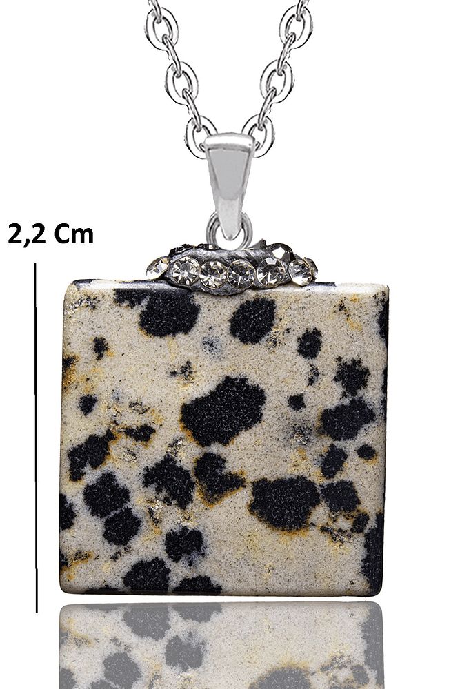 Sertifikalı Zirkon Taşlı Bıldırcın Benekli Jasper Taşı Kolye
