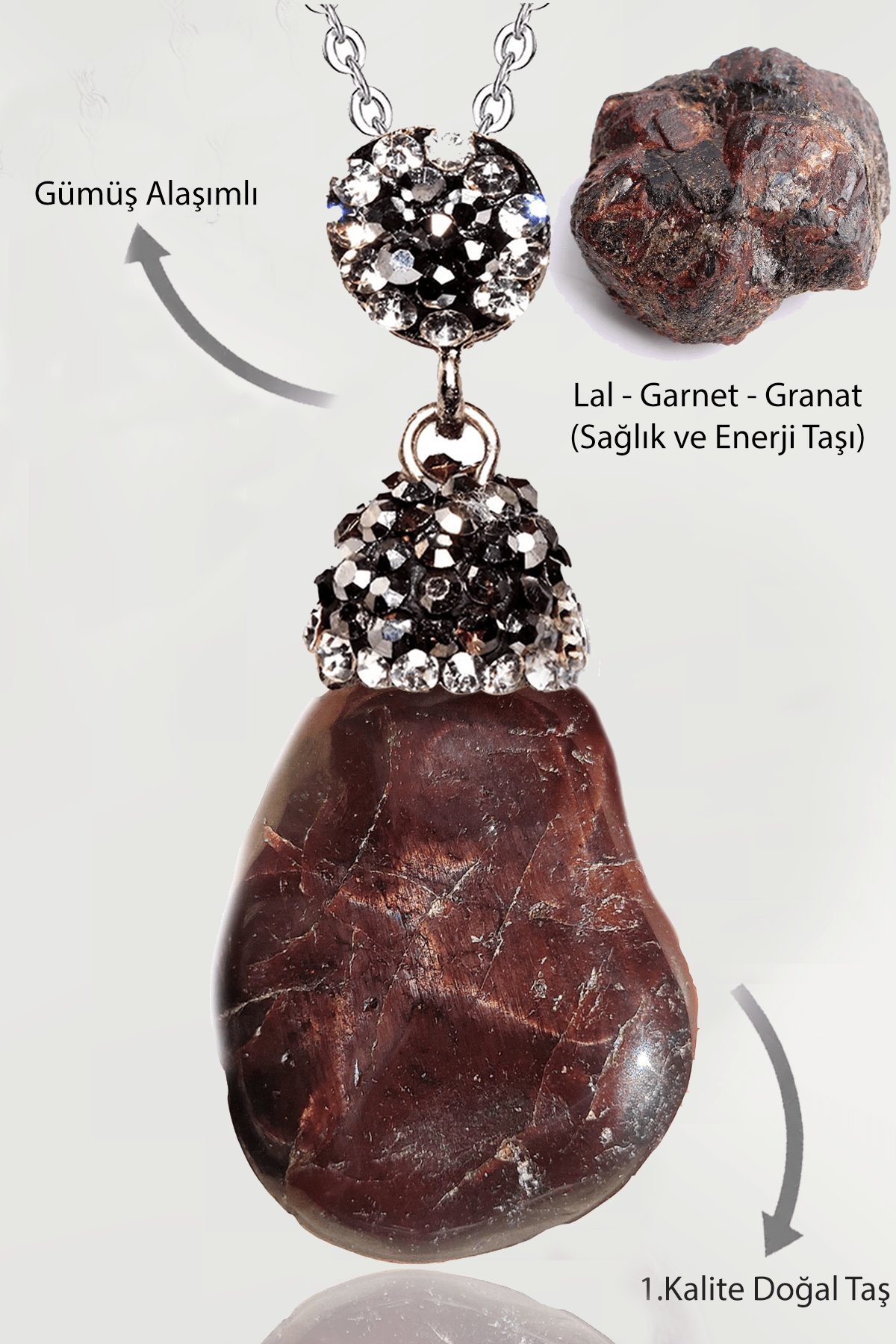 Sertifikalı Zirkon Taşlı Ham İşlenmemiş Lal Garnet Granat Taşı Kolye
