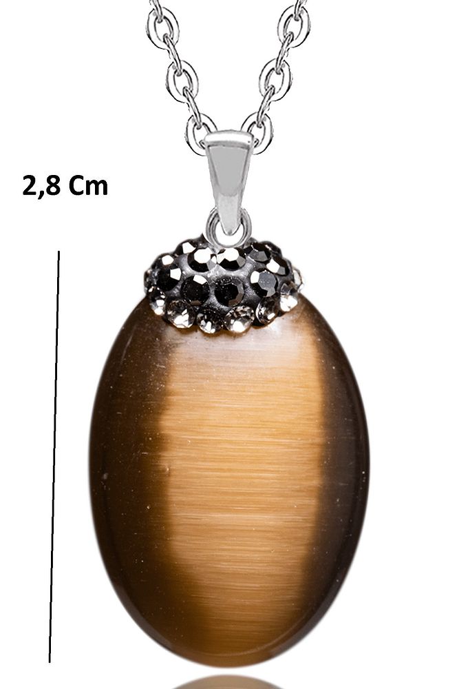 Sertifikalı Zirkon Taşlı Kahverengi Akik Doğal Taş Kolye