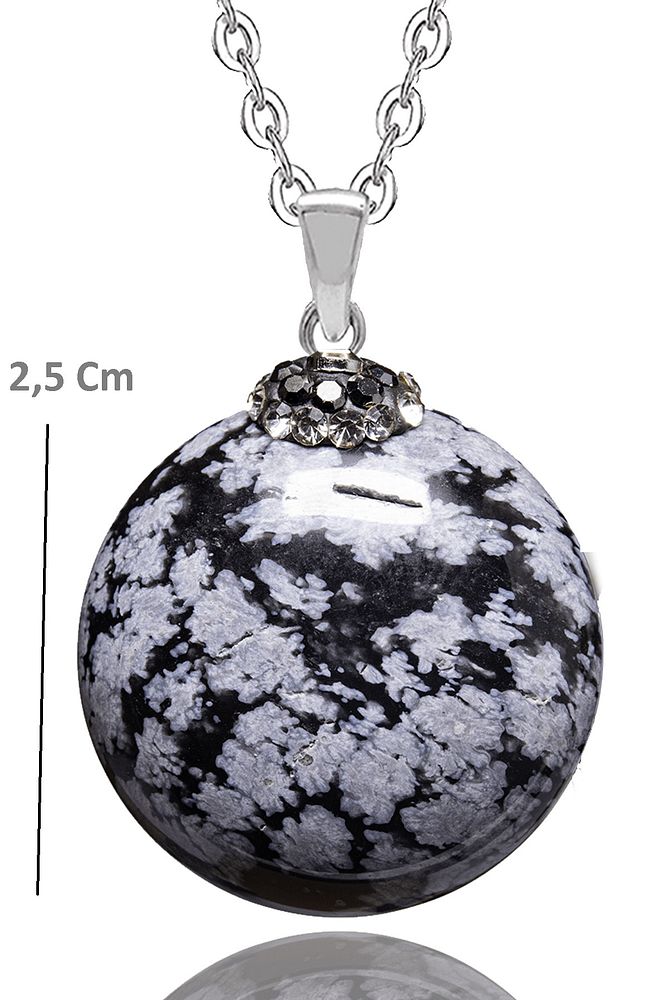 Sertifikalı Zirkon Taşlı Karlı Obsidyen Doğal Taş Kolye