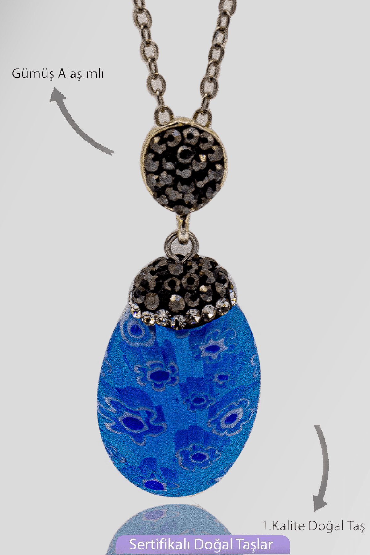 Sertifikalı Zirkon Taşlı Model Mavi Murano Kuvars Taşı Kolye