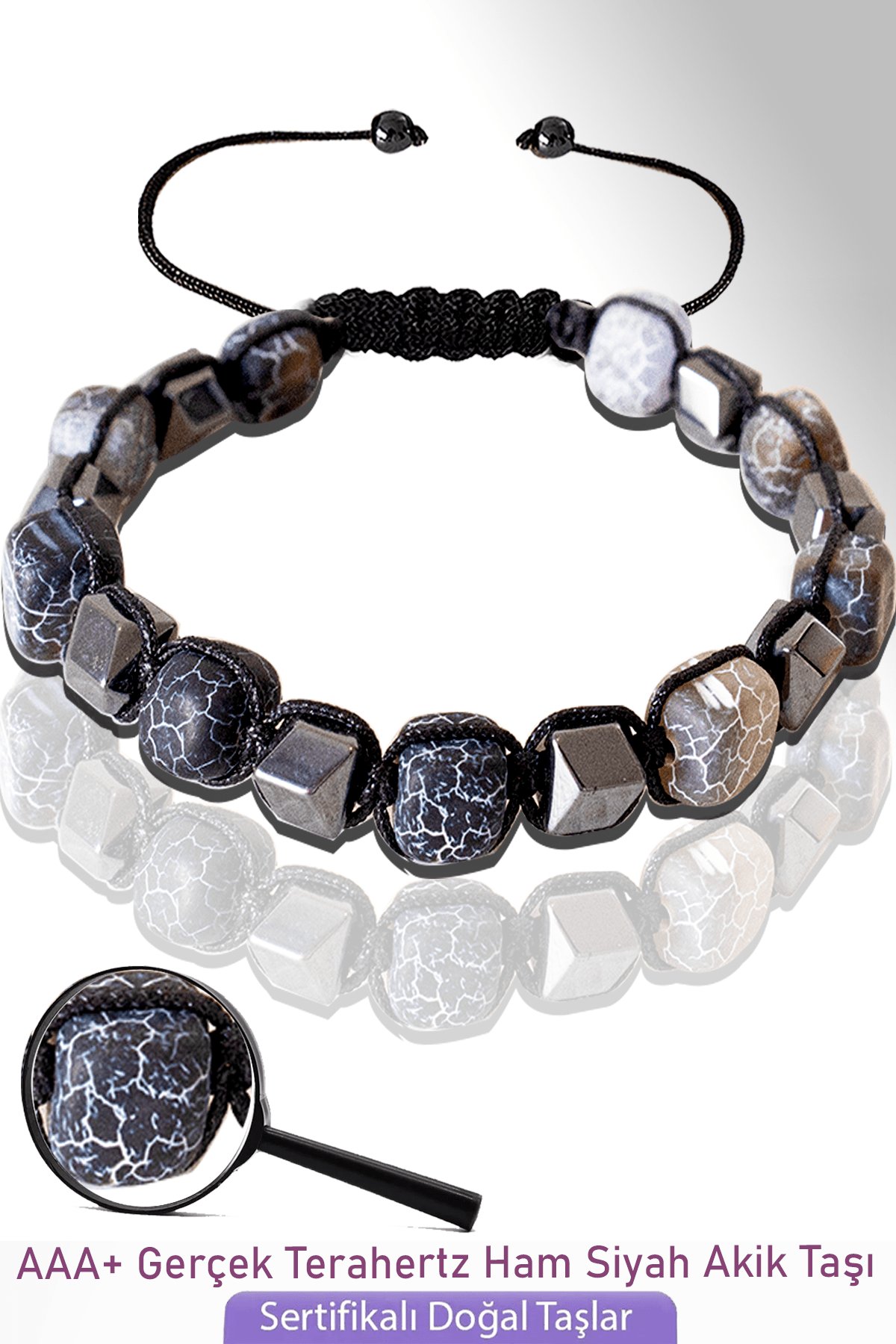 Sertifkalı Küp Model Ham Siyah Akik Taşı Bileklik - Ayarlamalı
