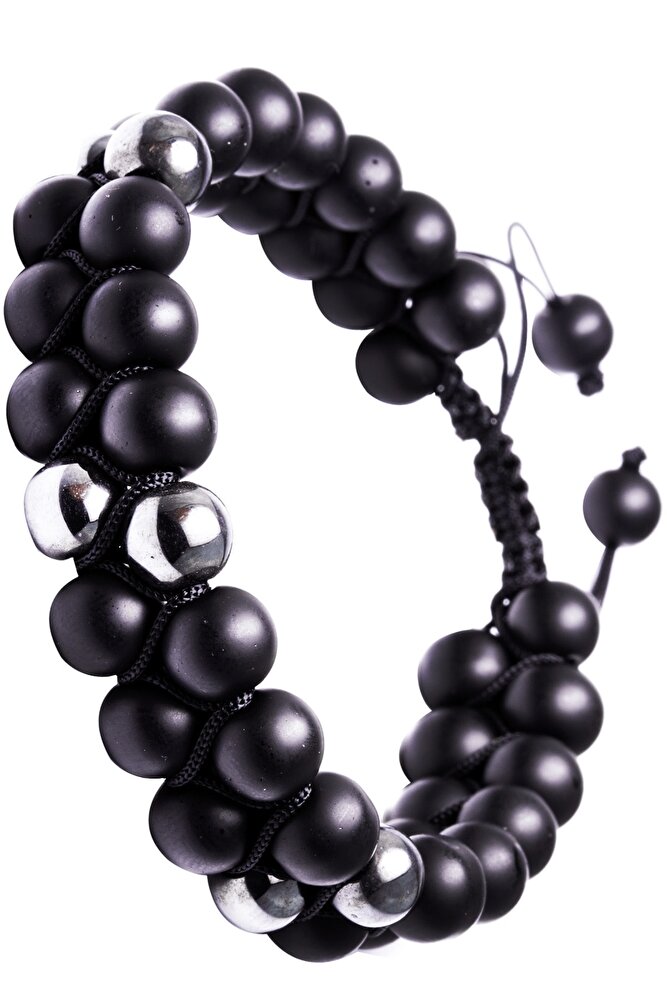 Sertiifkalı Doğal Hematit Oniks Taşı Bileklik