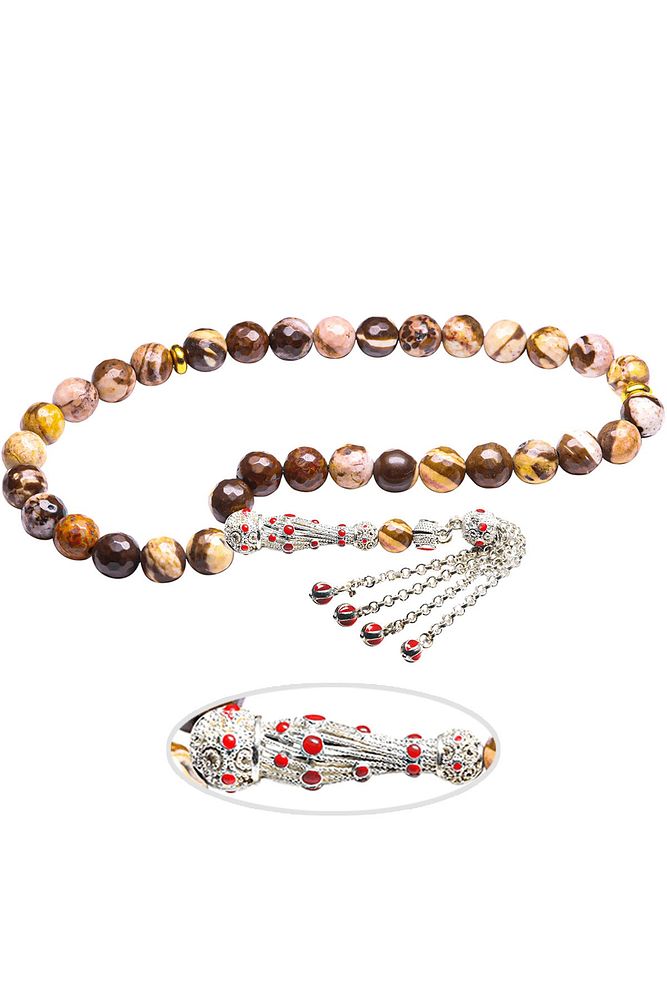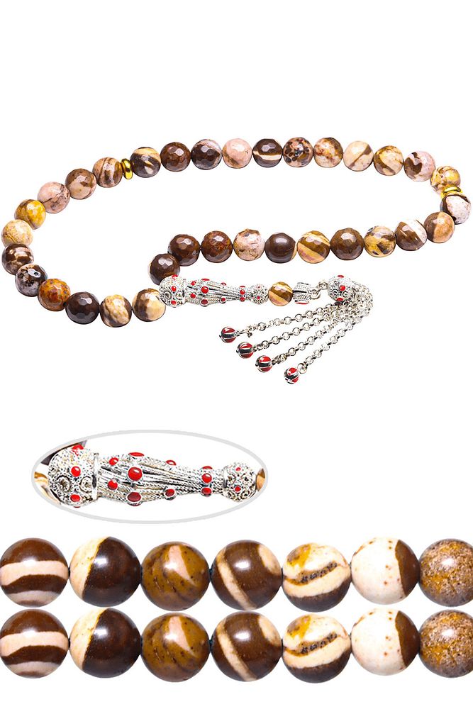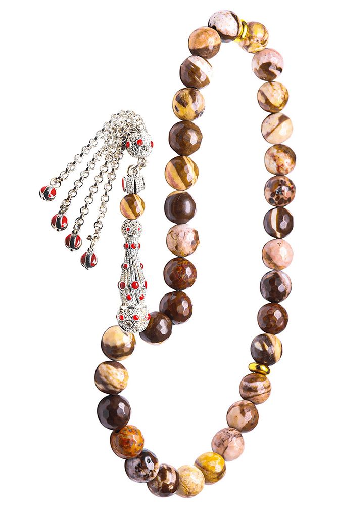 Sertiifkalı Telkari Püskül Doğal Jasper Taşı Tesbih