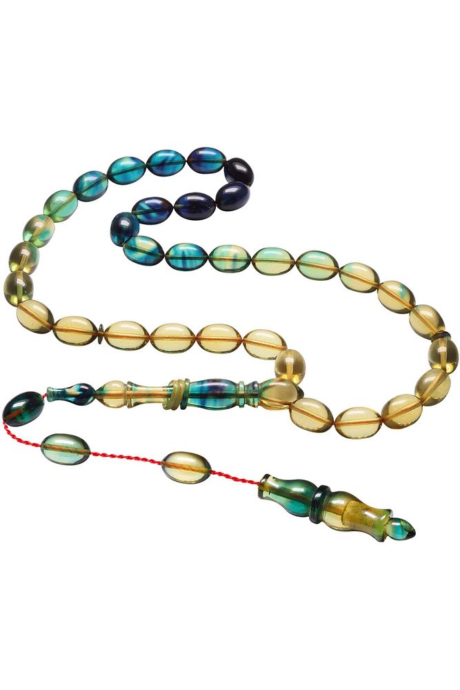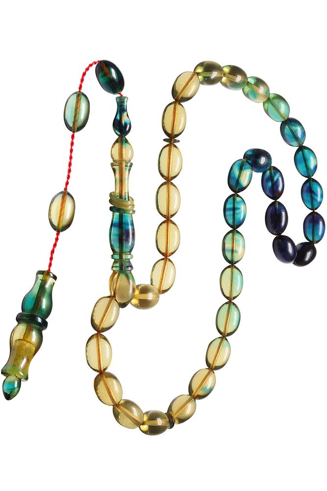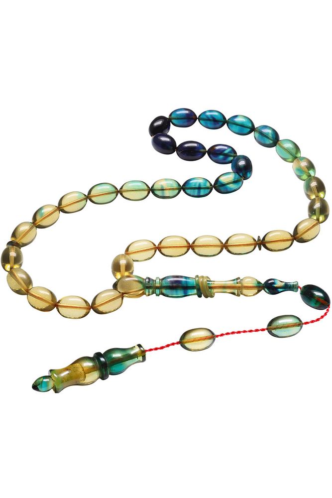 Sistemli Beyzi Kesim Mavi Şeffaf Renk Özel Ateş Kehribar Tesbih