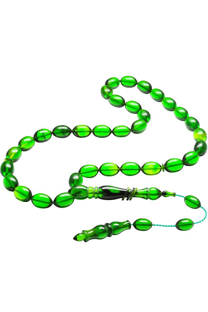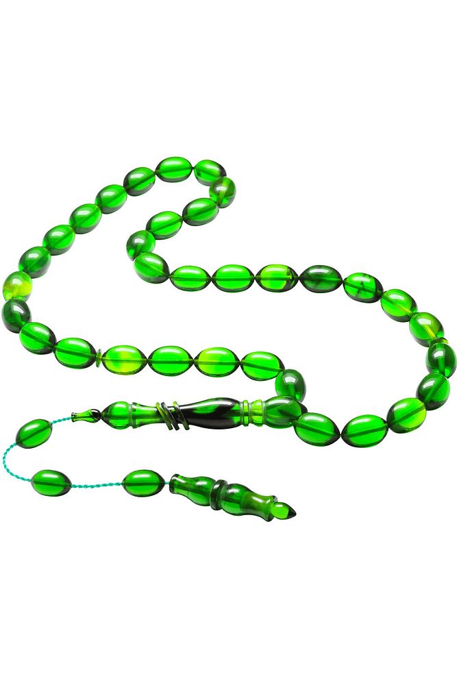 Sistemli Beyzi Kesim Yeşil Renkli Halkalı Ateş Kehribar Tesbih