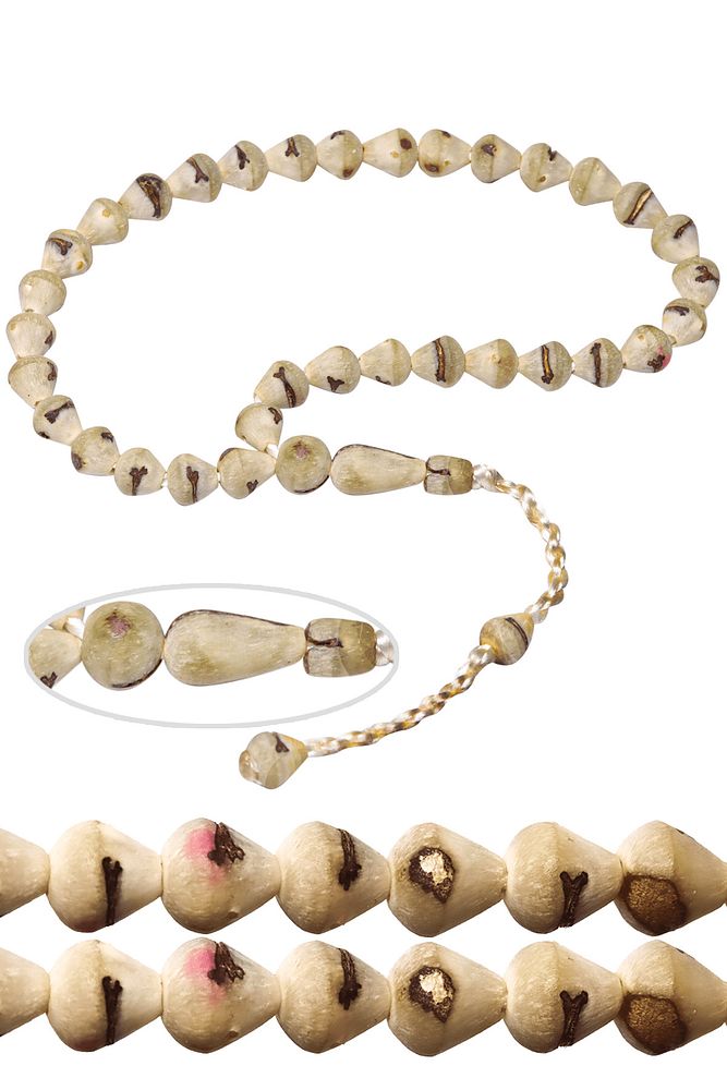 Bu tasarımda; Peygamber efendimizin dikmiş olduğu acve türü hurma çekirdeği kullanılmıştır. Zaman içerisinde kullanımda renk alır ve çektikçe kararır. Bakımını badem yağı ve ceviz yağı ile yapabilirsiniz.