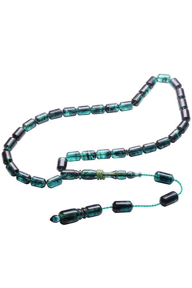 Sistemli Kapsül Kesim Halkalı Mavi Siyah Renkli Hareli Sıkma Kehribar Tesbih
