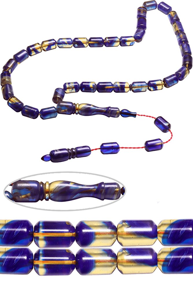 Sistemli Kapsül Kesim Mavi Renkli Hareli Halkalı Sıkma Kehribar Tesbih
