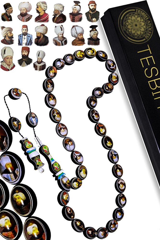 Ürün ya da Doğal Taş Açıklaması; ; (Doğal Antibakteriyel Temizleyici - Çektikçe Parlayan ve Kararır); ; 36 Osmanlı padişah resimli tesbih modelleri, ''Tesbih Atölyesi'' Atölyelerinde ustalarımız tarafından kuru torna işciliği ile elde özen ile tane tane işlenmektedir. Ürünlerimiz el işciliği olduğu için sınırlı sayıda üretilmektedir. Üzerine üç kat el cilası atılmıştır. Üzerinde 36 osmanlı padişahının resimleri mevcuttur. Tasarımlarımızda kullandığımız ürünler sizlere özel ağaç kutusu ile gönderilecektir.; ; ''Bu tasarımda; Orta siyah kısımlarında taş katalin ve üst kısımlarında filexiglass (uçak camı) kullanılmıştır.'' Asla sararma ve solma yapmayacaktır. Sıralı sistem ile dizilmiştir.; ; Üretildiği Malzeme; Katalin ve Uçak Camı; Sertifikalı Mı?; Orijinallik Sertifikalı ve Garanti Belgesi Gönderilir; Ağırlık; 30-35gr; Tane Şekli; 10x13 mm; Tane Ölçüsü; Beyzi Kesim; Toplam Uzunluk; 30-40 cm; İmame ve Püskül Maddesi; Sistemli;