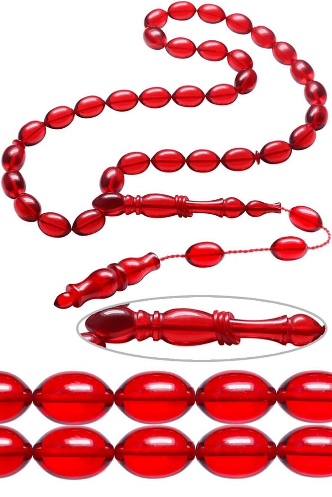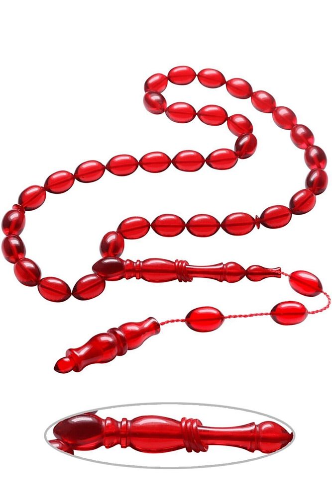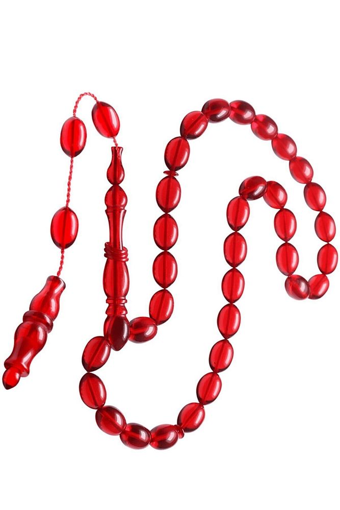 Sistemli Kırmızı Renkli Beyzi Kesim Halkalı Ateş Kehribar Tesbih