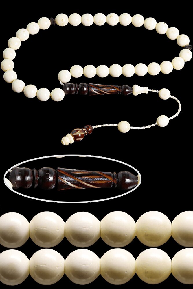 Sistemli Küre Kesim Bilek Boy Oyma Işcilikli Kuka Geçişli Deve Kemiği Tesbih