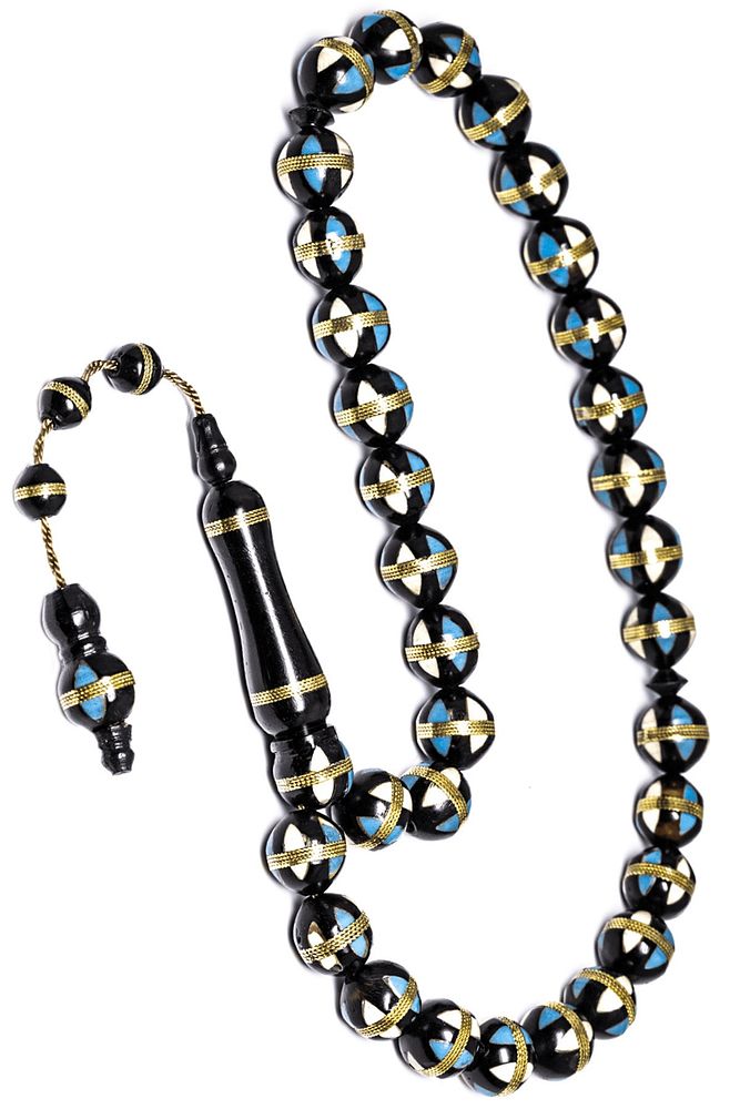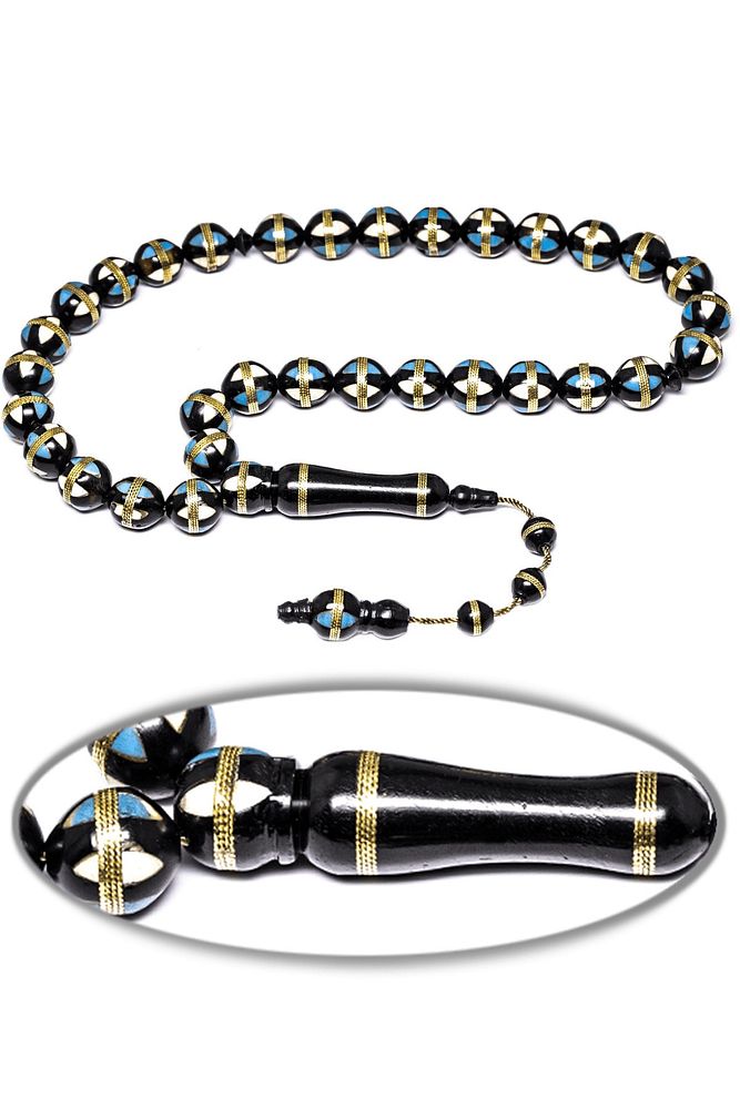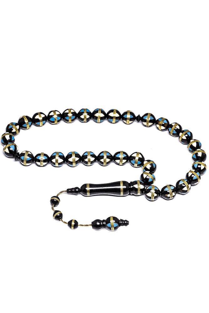 Sistemli Küre Kesim Firuze Işlemeli Pirinç Sarmal Kuka Tesbih