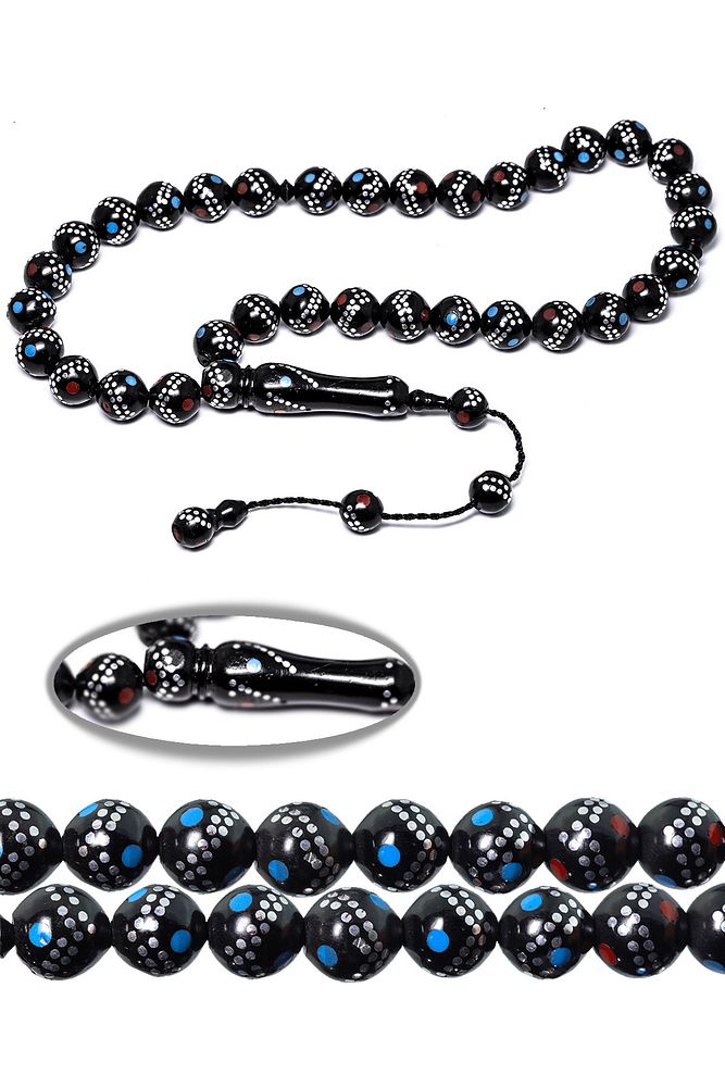 Sistemli Küre Kesim Gümüş Mercan Firuze Işlemeli Kuka Tesbih