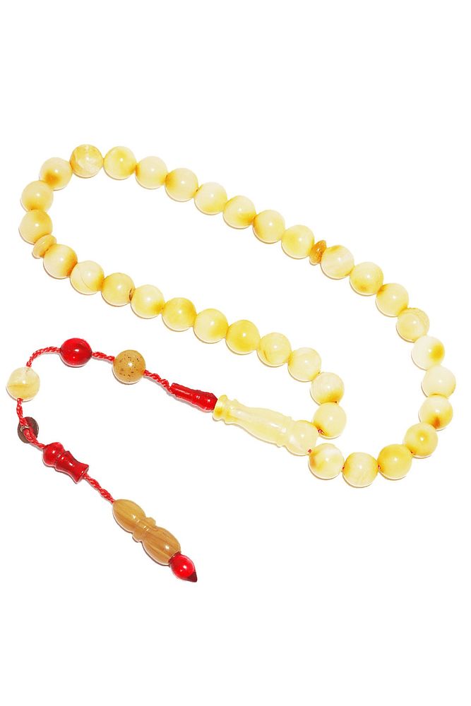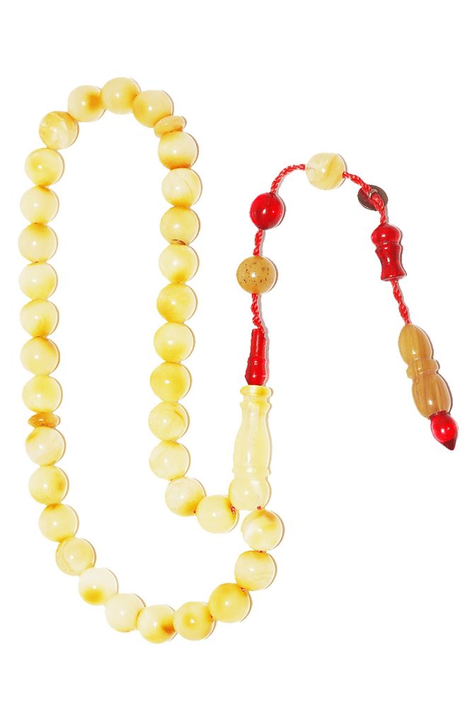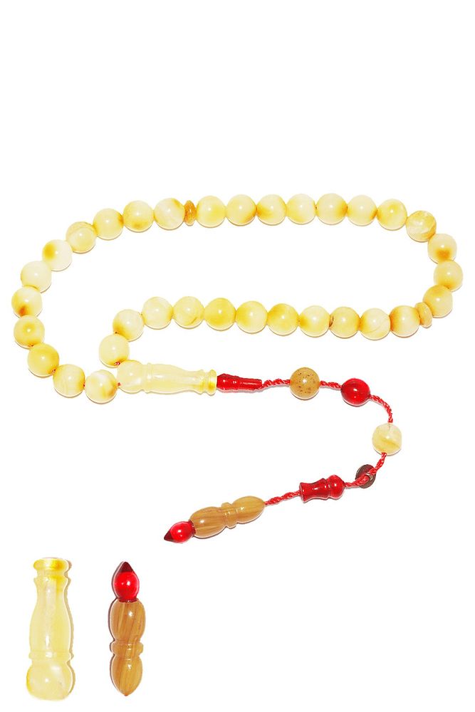 Ürün ya da Doğal Taş Açıklaması; ; (Doğal Sakinleştirici, Astım, Guatr ve Ağrı Kesici Taşı); ; Doğal damla kehribar tesbih modelleri, ''Tesbih Atölyesi'' Atölyelerinde ustalarımız tarafından kuru torna işciliği ile elde özen ile tane tane işlenmektedir. Ürünlerimiz el işciliği olduğu için sınırlı sayıda üretilmektedir. Üzerine üç kat el cilası atılmıştır. Kehribar çam ağacının fosilleşmiş reçinesidir. Baltık ülkelerinden en kaliteli kehribar kütlelerini ithal etmekteyiz. Damla kehribar tesbih Buram buram çam kokulu ürünlerimiz %100 doğal, garantili ve sertifikalıdır. Ürünlerimiz fabrikasyon olmadığı için kehribar tanelerinin hiç biri birbirinin aynısı olmadığı için küçükte olsa farklılıklar olabilir.; ; Bu tasarımda; Günlük çekim küre kesim mat ukrayna %100 doğal damla kehribar taşı kullanılmıştır. Püskül yapımında; Kırmızı geçişli kısımlar blok zardır. Sıralı sistem kullanılmıştır.; ; Üretildiği Taş; Kehribar Taşı; Renk; Doğal Renk; Ağırlık; 8.4 gr; Tane Şekli; 6.7x6.7 mm; Tane Ölçüsü; Küre Kesim; Toplam Uzunluk; 20-30 cm; Püskül Maddesi; Sistemli;