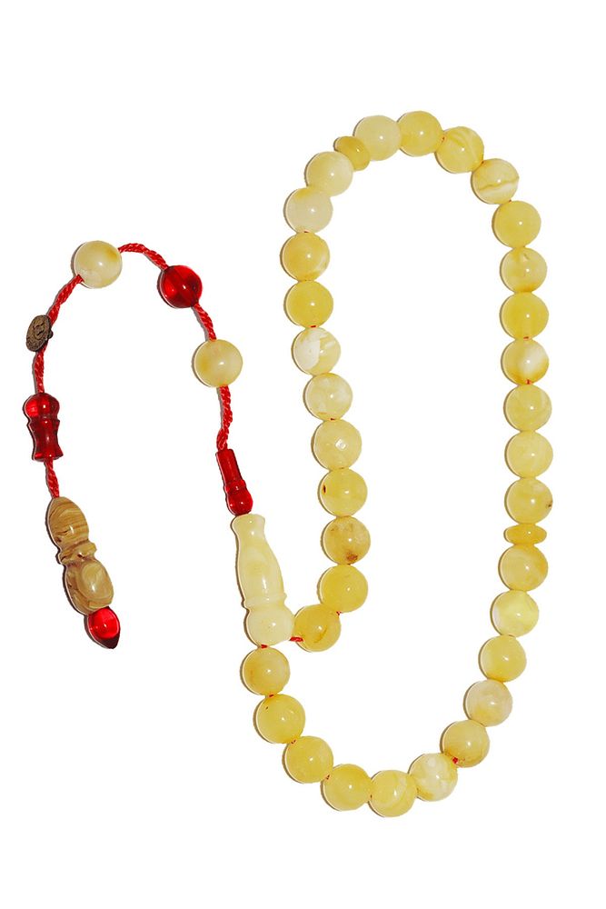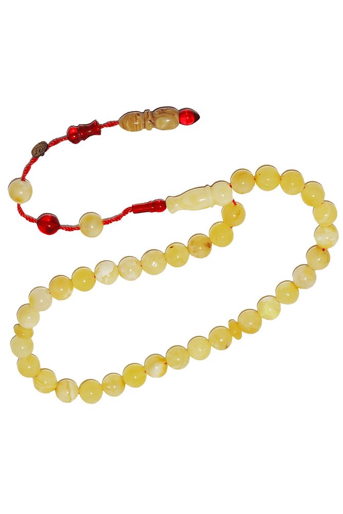 Ürün ya da Doğal Taş Açıklaması (Doğal Sakinleştirici, Astım, Guatr ve Ağrı Kesici Taşı) Doğal damla kehribar tesbih modelleri, ''Tesbih Atölyesi'' Atölyelerinde ustalarımız tarafından kuru torna işciliği ile elde özen ile tane tane işlenmektedir. Ürünlerimiz el işciliği olduğu için sınırlı sayıda üretilmektedir. Üzerine üç kat el cilası atılmıştır. Kehribar çam ağacının fosilleşmiş reçinesidir. Baltık ülkelerinden en kaliteli kehribar kütlelerini ithal etmekteyiz. Damla kehribar tesbih Buram buram çam kokulu ürünlerimiz %100 doğal, garantili ve sertifikalıdır. Ürünlerimiz fabrikasyon olmadığı için kehribar tanelerinin hiç biri birbirinin aynısı olmadığı için küçükte olsa farklılıklar olabilir. Bu tasarımda; Günlük çekim küre kesim mat ukrayna %100 doğal damla kehribar taşı kullanılmıştır. Püskül yapımında; Kırmızı geçişli kısımlar blok zardır. Sıralı sistem kullanılmıştır. Üretildiği Taş; Kehribar Taşı; Renk; Doğal Renk; Ağırlık; 8.4 gr; Tane Şekli; 6.8x6.8 mm; Tane Ölçüsü; Küre Kesim; Toplam Uzunluk; 20-30 cm; Püskül Maddesi; Sistemli;