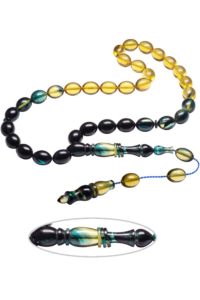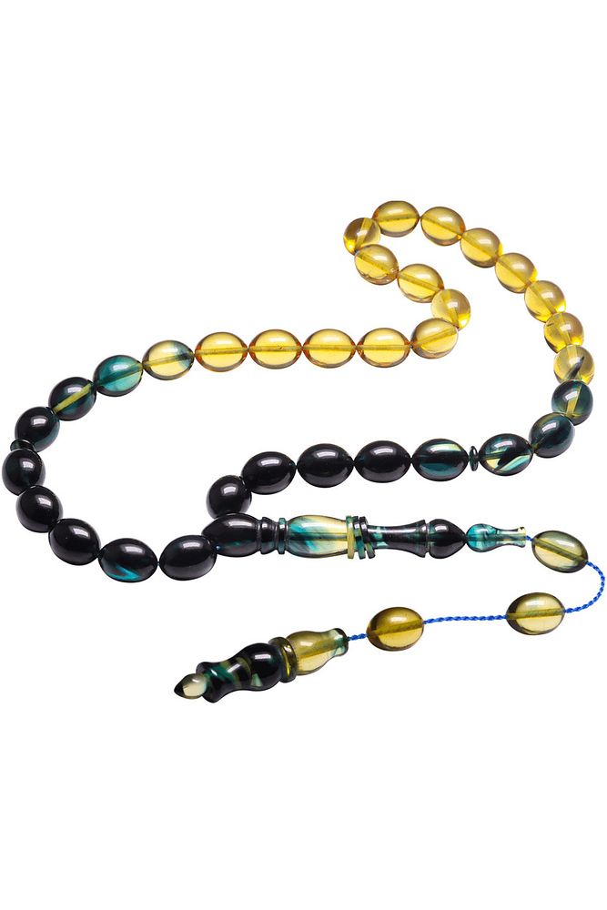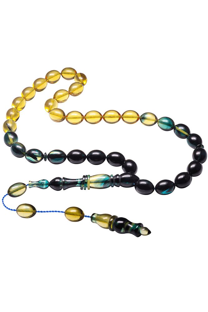 Sistemli Tombul Beyzi Kesim Koyu Mavi Renk Hüzmesi Ateş Kehribar Tesbih