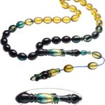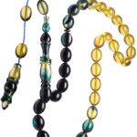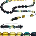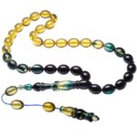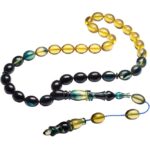 Ürün ya da doğal taş açıklaması (ağrı kesici, sinir stres ve bereket taşı) ateş kehribar tesbih modelleri, ”tesbih atölyesi” atölyelerinde ustalarımız tarafından kuru torna işciliği ile elde özen ile tane tane işlenmektedir. Ürünlerimiz el işciliği olduğu için sınırlı sayıda üretilmektedir. Tasarımlarımızda kullandığımız reçineler dünya’nın en kaliteli reçineleridir. Kısa bir süre içerisinde renk alır ve koku verir. Ürünleriniz orijinallik ve garanti belgesi ile gönderilir. Tasarımlarımıza üç kat cila atılmıştır. Muhteşem bir çekime sahip koleksiyonluk ve günlük çekim için ideal ürünlerdir. Bu tasarımda; koyu mavi renk hüzmesi 1.Sınıf orijinal renk alan ve koku veren kaliteli ateş kehribar reçine kullanılmıştır. Her kehribar tanesi birbirinin aynısı olmadığı için küçükte olsa farklılıklar gösterebilir. Üretildiği malzeme ateş kehribar ana renk koyu mavi renk ağırlık 20-30 gr tane şekli 8.5×11.5 mm tane ölçüsü beyzi kesim toplam uzunluk 20-30 cm imame ve püskül maddesi sistemli