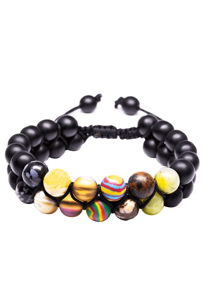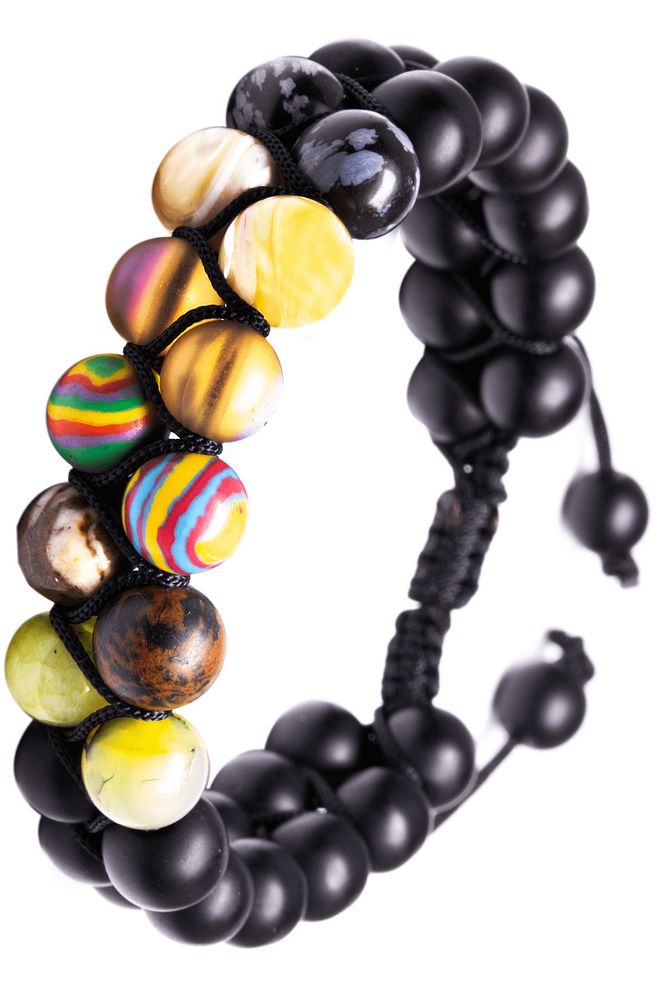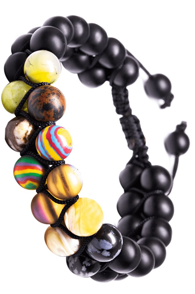 Siyah Küre Çift Sıra Makrome 7 Çakra Bileklik