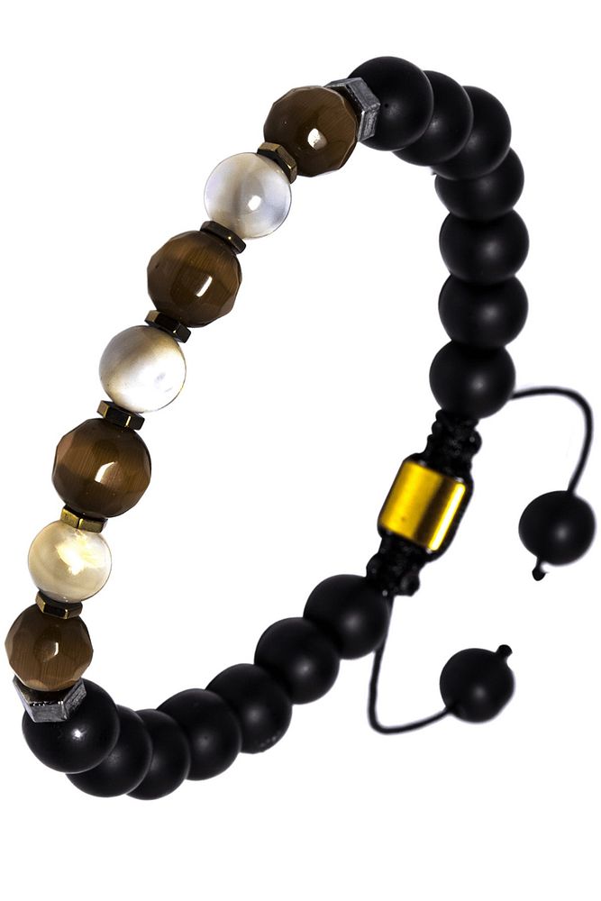Sertifikalı Kahverengi Obsidyen Akik Oniks Bileklik - 8 mm Doğal Taş Terahertz Aparatlı