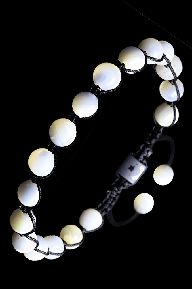 Sedef Bileklik, Siyah renkli kaliteli paraşüt ipi ile örülerek asla kopmaz bir yapıya sahiptir. Sedef taşımız Dünya\'nın en kaliteli orijinal sedef taşlarından özel olarak seçilerek tasarlanmıştır. Sinir ve stresinizi alacak sizleri gevşetecek ve rahatlatacaktır. Aynı zamanda ortamdaki negatif enerjileri yok eder ve pozitif enerjilere dönüştürür. Doğal Taş Bilekliklerimiz \'\'Tesbih Atölyesi\'\' Logolu Özel Kadife Kesesinde sizlere sunulacaktır.