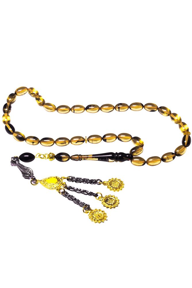 Siyah Şeffaf Renkli Altın Kaplama Püsküllü Ateş Kehribar Tesbih
