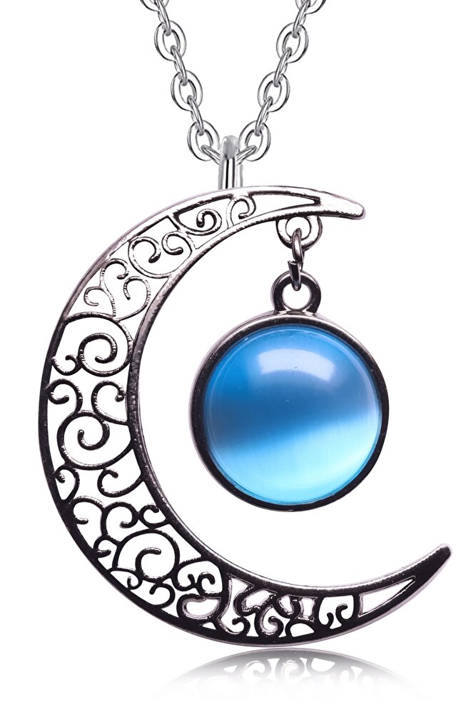 Telkari El İşciliği Ay Yıldız Sembolü Mavi Kedi Gözü Taşı Doğal Taş Kolye