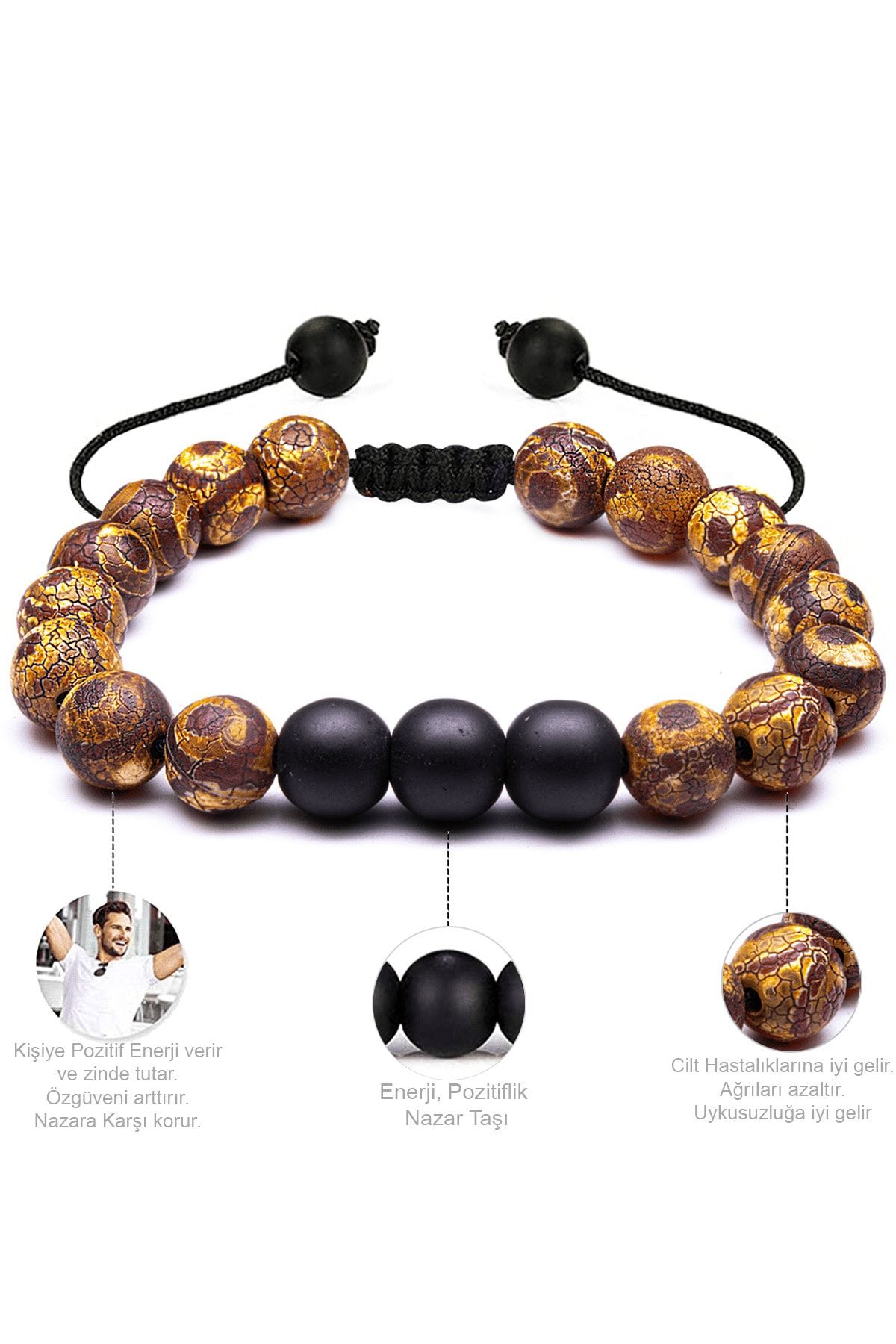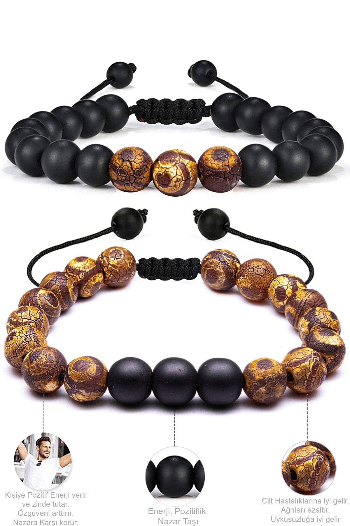 Tibet Akik Kahverengi Renk Doğal Taş Bileklik Seti