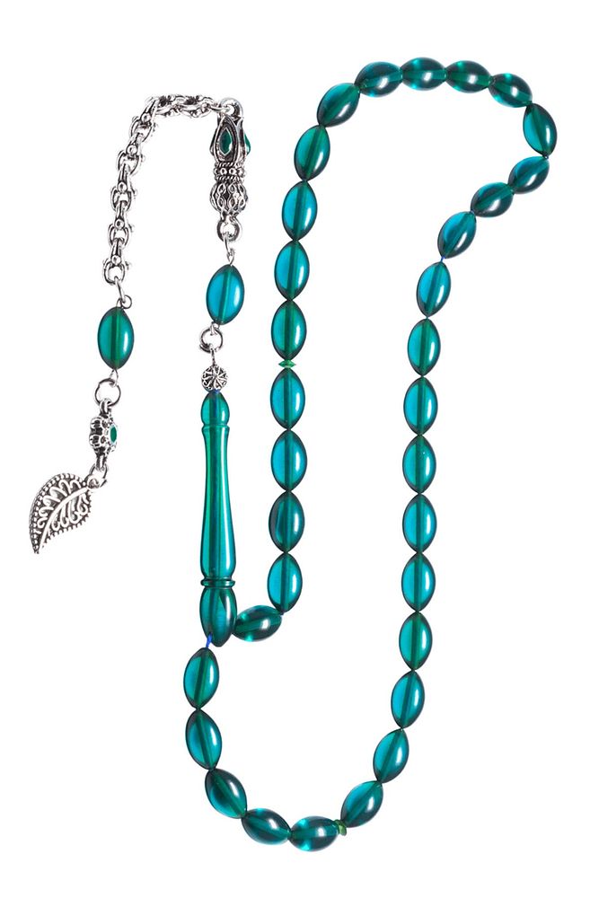 Turkuaz Renkli Beyzi Kesim Ateş Kehribar Tesbih