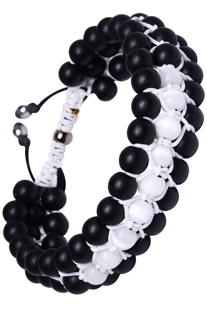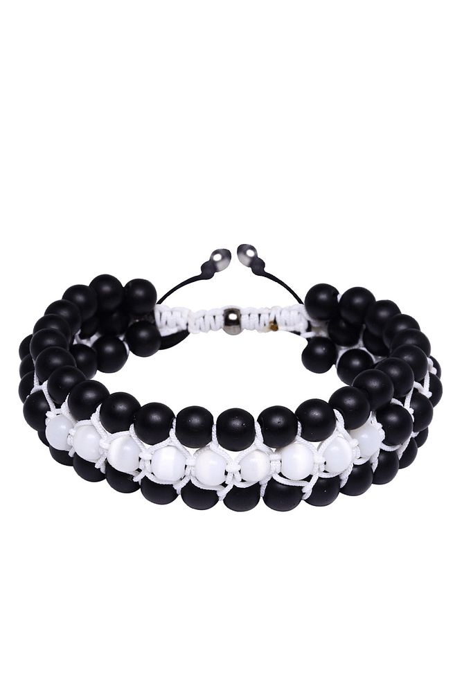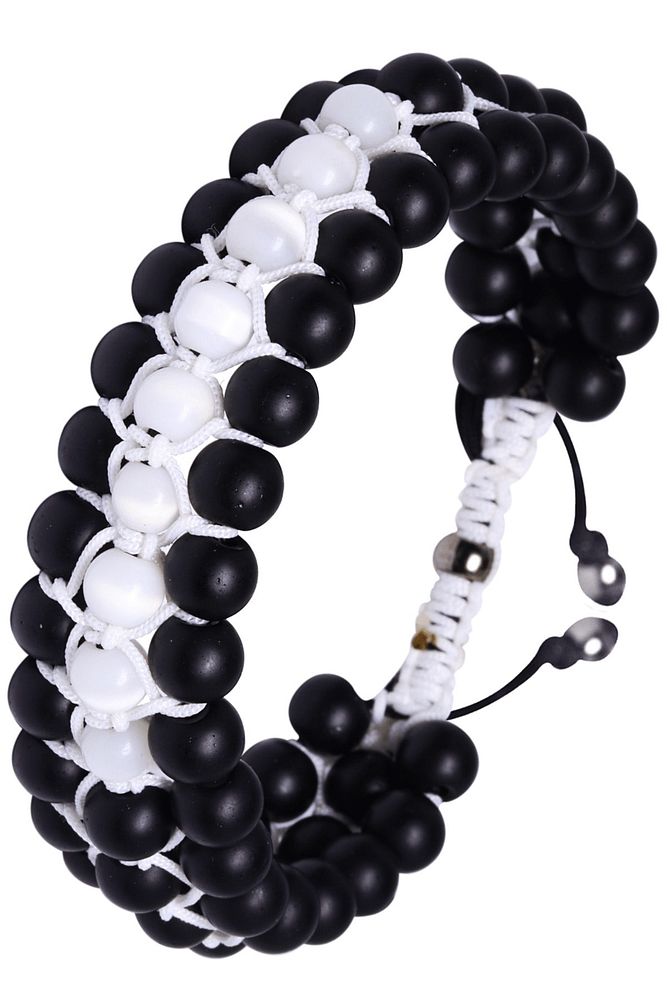 Üçlü Beyaz Makrome Mat Oniks ve Sedef Bileklik