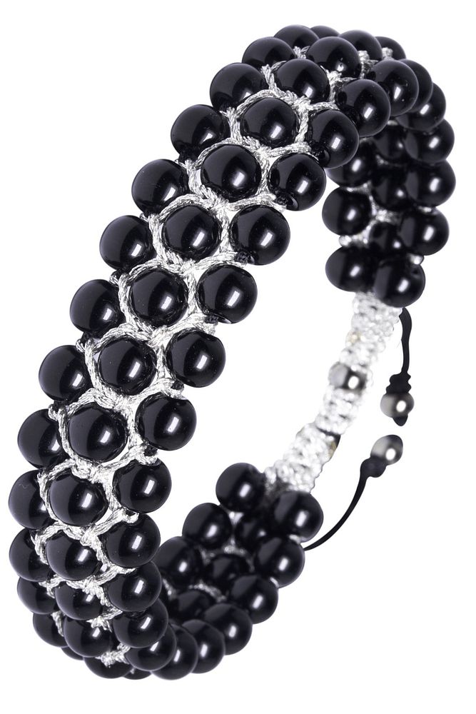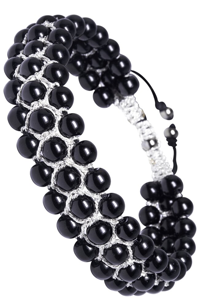 Üçlü Gümüş Makrome Parlak Oniks Bileklik