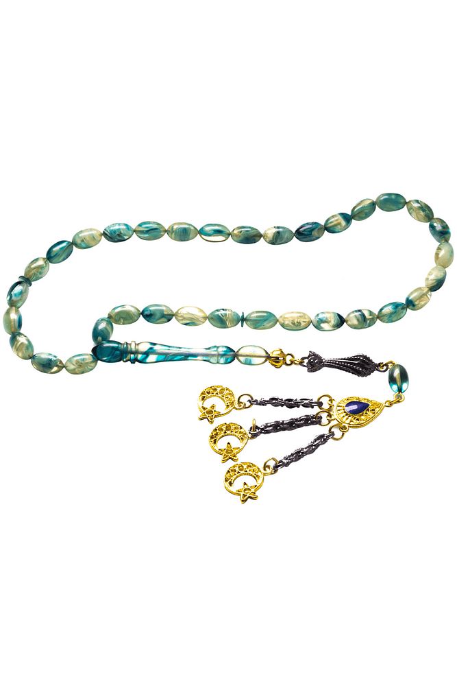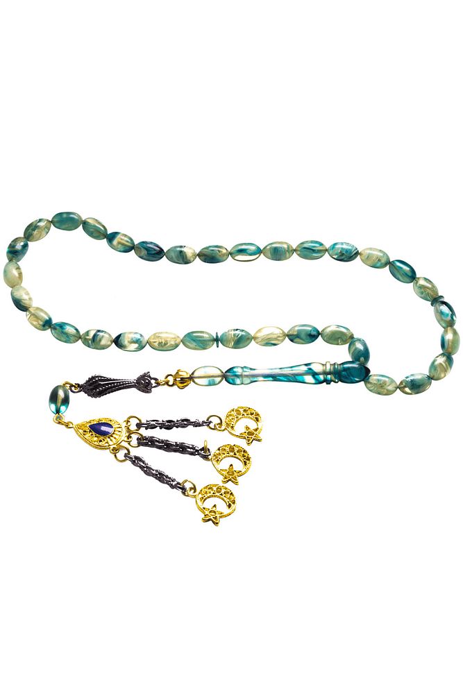 Bu tasarımda; Mavi renkli yoğun hareli özel renk alan kaliteli çubuk sıkma kehribar reçine kullanılmıştır.  Her kehribar tanesi birbirinin aynısı olmadığı için küçükte olsa farklılıklar gösterebilir.