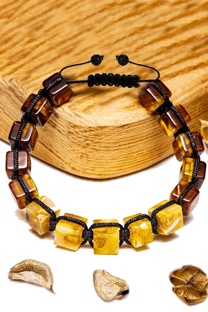 Üretici Sertifikalı Küp Kesim Vişne Mat Sarı Doğal Damla Kehribar Bileklik