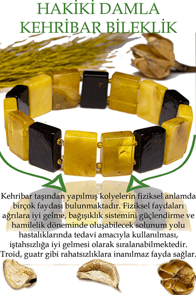 Ürün ya da Doğal Taş Açıklaması (Sinir, Stres, Baş Ağrısı, Endişe ve Korku Taşı) Damla kehribar Bileklik, modelleri ''Tesbih Atölyesi'' Atölyelerinde usta ellerde siz değerli müşterimiz için özenle hazırlanmaktadır. Ürünlerimizin tamamı el emeği olup sınırlı sayıda üretilmektedir. Tasarımda kullanılan taşların her birini farklı ülkelerden ithalat etmekteyiz. Dünya'nın en kaliteli taşlarını tasarımlarımızda kullanmaktayız. Orijinallik ve garanti belgesi adınıza gönderilir. Tasarımda kullandığımız doğal taşların hiç biri birbirinin aynısı olmadığı için küçükte olsa farklılıklar gösterebilir. Bu tasarımda; Doğal Sarı - Siyah Damla Kehribar Bileklik kullanılmıştır. Esnek misinalı ipi sağlam örülerek yapıldığı için asla kopmaz ve aşınmayacak her bileğe göre ayarlanabilir boyuttadır. Üretildiği Taş; Damla Kehribar Taşı; Ana Renk; Doğal Renk; Ağırlık; 20-30 Gr; Bileğime Uyar Mı?; 18-20 Cm (Sipariş sonrası sipariş numaranızı ve bilek ölçünüzü belirtirseniz o büyüklükte ve küçüklükte seçilecektir.); Tane Ölçüsü; 1.5x1.1m;