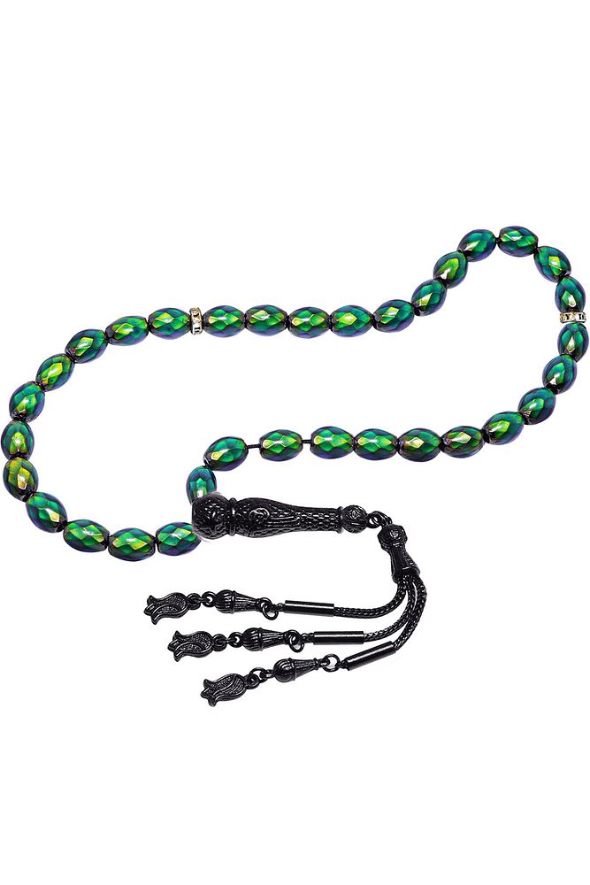 Vücut ısısına göre 12 renk değiştiren meteor taşı ; ; His taşı tesbih modelleri, ''tesbih atölyesi'' atölyelerinde ustalarımız tarafından kuru torna işciliği ile elde özen ile tane tane işlenmektedir. Dünya'nın en uygun fiyatlarına tesbih satışı sağlamaktayız. Tasarımlarımızda kullandığımız taşlar dünya'nın en kaliteli taşlarıdır. Hislerinize göre 12 renk değiştirir. Yedek ipi gönderilir orijinallik ve garanti belgesi paketinize eklenmektedir. ; ; Bu tasarımın yapımında; volkanik oluşum meteor taşları ile yapılan piyasa değeri 700 tl üzeri olan vücut ısısına göre saniyeler içerisinde 12 renk değiştiren his taşı kullanılmıştır. Imame ve püskül tasarımında; sarı turkuaz mineli 24 ayar altın kaplama telkari imame ve püskül seti kullanılmıştır. Çift kaplama atıldığı için renk atmaz ve kararmaz bir yapıya sahiptir. ; Üretildiği taş ; : ; His taşı ; Ana renk ; Vücut ısısına göre 12 renk değiştirir ; His taşı ağırlığı ; 33-35 gr ; Tane şekli ; 7x10 mm ; Tane ölçüsü ; Arpa kesim ; Toplam uzunluk ; 20-30 cm ; Imame ve püskül maddesi ; Düşük ayar gümüş ;