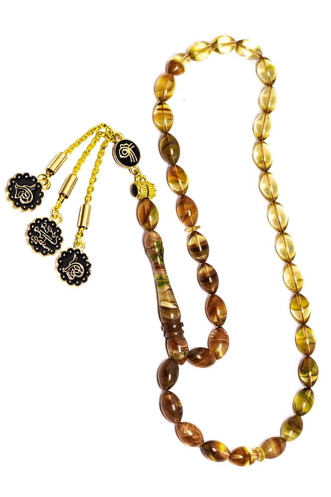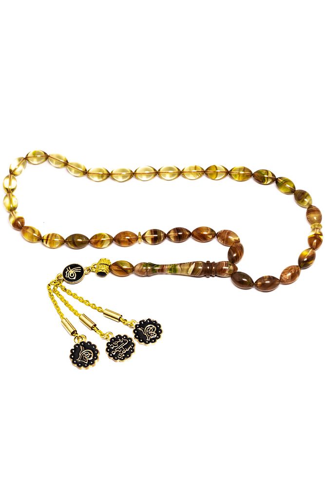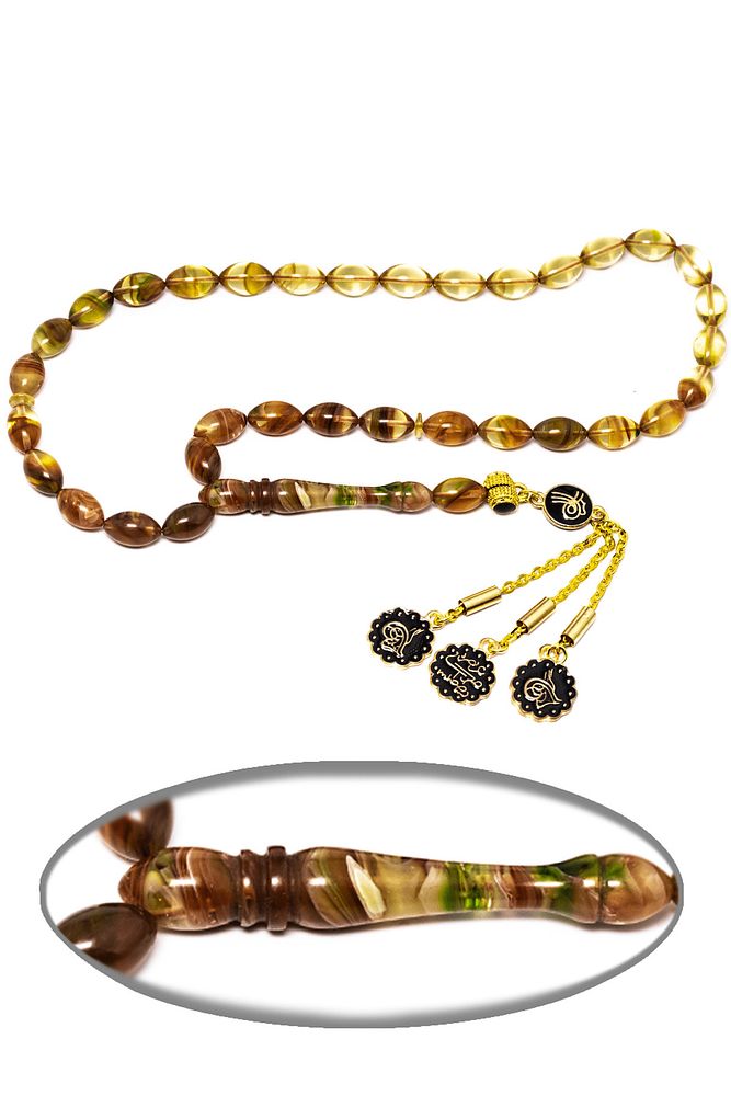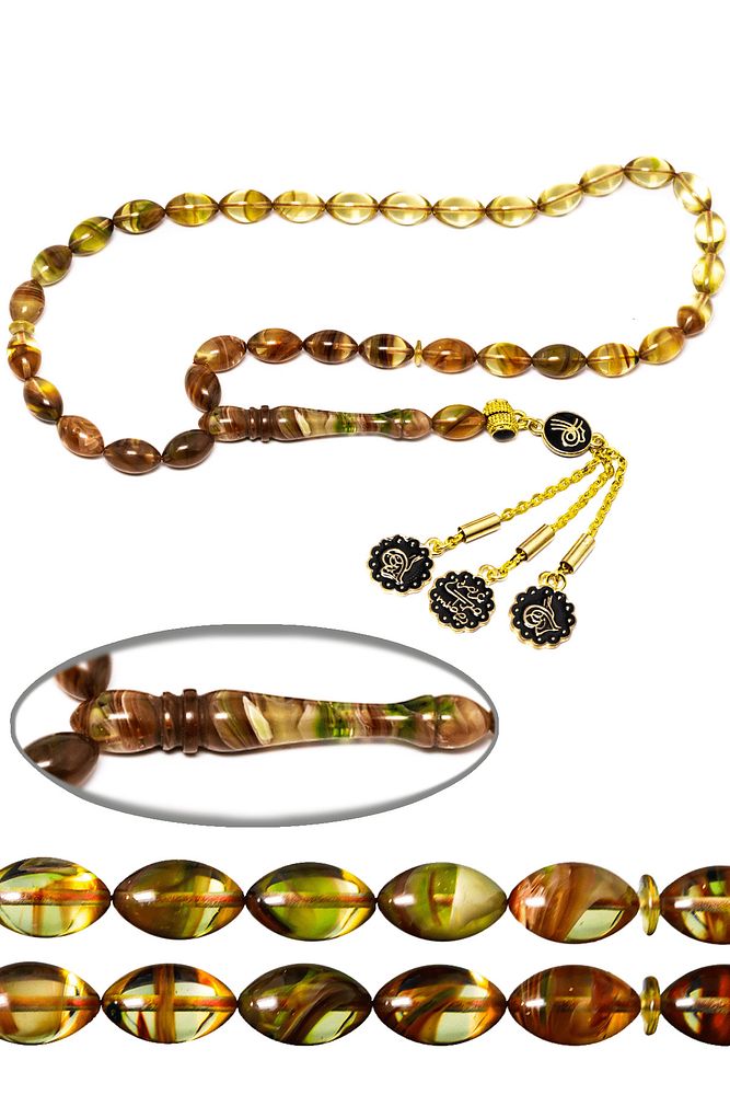 Yeşil Kahverengi Renk Özel Hareli Sıkma Kehribar Tesbih