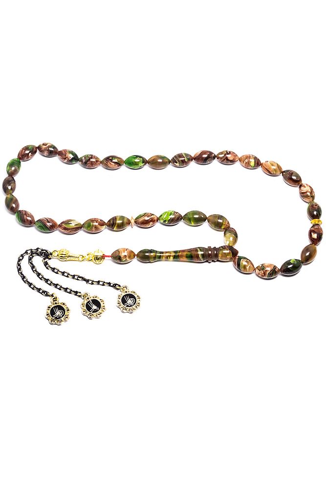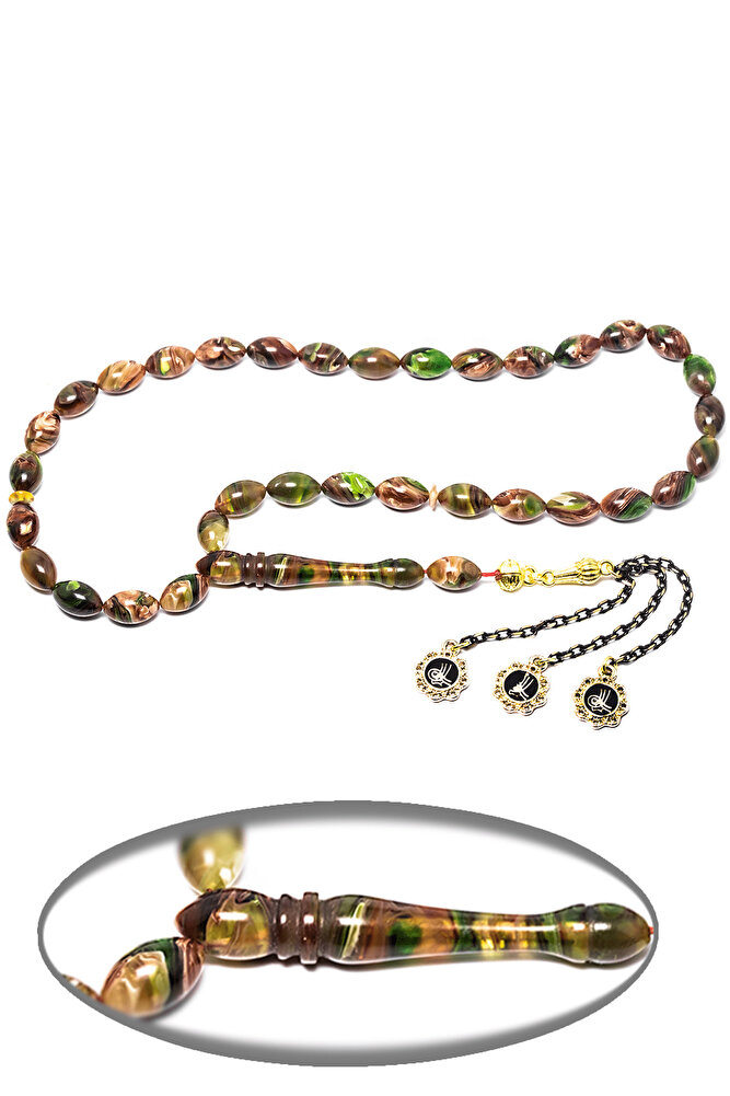 Yeşil Kahverengi Renkli Yoğun Hareli Sıkma Kehribar Tesbih