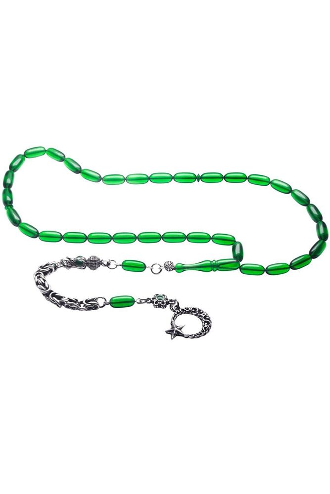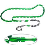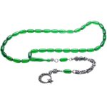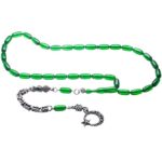 Yeşil Renkli Kapsül Kesim Ateş Kehribar Tesbih