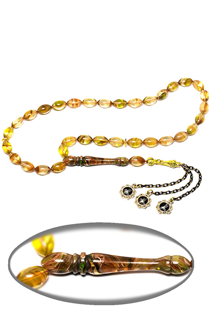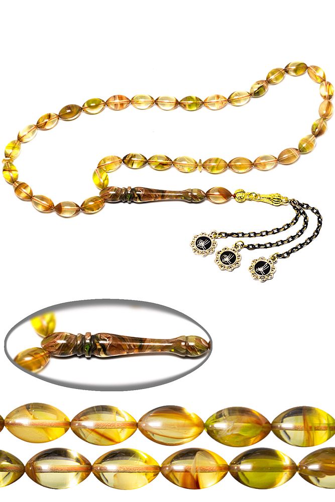 Yeşil Şeffaf Renkli Hareli Sıkma Kehribar Tesbih