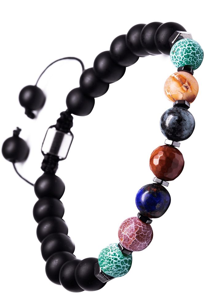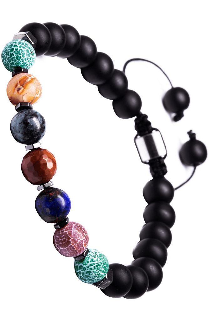 Farklı renk ve dokulara sahip doğal taşların birleşimi bilekliğe enerjik ve dikkat çekici bir hava kazandırır. Günlük kullanımda stilinizi tamamlayan güçlü bir aksesuar olarak öne çıkar. Hem sade hem de dikkat çekici kombinlerle uyum sağlayan bu model, her tarzda rahatlıkla kullanılabilir.