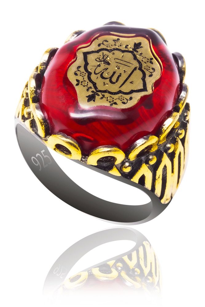 Allah Yazılı Akik Taşlı Gümüş Yüzük