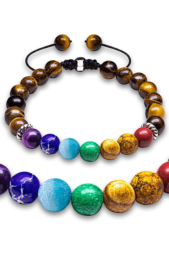 Antistres Pozitif Enerji Sertifikalı Kaplan Gözü Ametist Varisit Akik Yeşim Mercan Taşı Bileklik