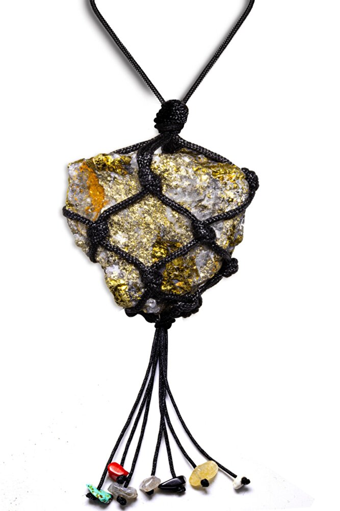 bu doğal taş kolye tasarımımızda; yüksek kalite doğal altınlı pirit doğal taş kolye kullanılmıştır. Zincir ölçüsü 50 cm'dir. Her bayan için uyumludur. Yetişkin ve çocuk için kullanılabilir. %100 orijinal ve gerçek taştır. Sinirinizi stresinizi alacak, mineral açısından oldukça zengin olduğu için bulunduğu için teniniz ile temas eder etmez aradaki farkı kısa bir süre içinde hissedeceksiniz.