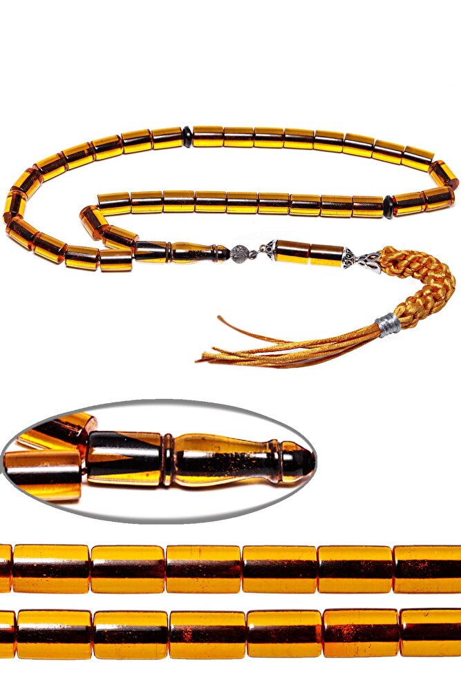 Ürün ya da Doğal Taş Açıklaması (Ağrı Kesici, Sinir Stres ve Bereket Taşı) Ateş kehribar tesbih modelleri, ''Tesbih Atölyesi'' Atölyelerinde ustalarımız tarafından kuru torna işciliği ile elde özen ile tane tane işlenmektedir. Ürünlerimiz el işciliği olduğu için sınırlı sayıda üretilmektedir. Tasarımlarımızda kullandığımız reçineler Dünya'nın en kaliteli reçineleridir. Kısa bir süre içerisinde renk alır ve koku verir. Ürünleriniz orijinallik ve garanti belgesi ile gönderilir. Tasarımlarımıza üç kat cila atılmıştır. Muhteşem bir çekime sahip koleksiyonluk ve günlük çekim için ideal ürünlerdir. Bu tasarımda; Bal sarısı renkli özel 1.sınıf renk alan ve koku veren kaliteli ateş kehribar reçine kullanılmıştır. Her kehribar tanesi birbirinin aynısı olmadığı için küçükte olsa farklılıklar gösterebilir. Üretildiği Malzeme; Ateş Kehribar; Ana Renk; Bal Sarısı Renk; Ağırlık; 20-30 gr; Tane Şekli; 8x10 mm; Tane Ölçüsü; Kesme Kesim; Toplam Uzunluk; 20-30 cm; İmame ve Püskül Maddesi; Düşük Ayar Gümüş;